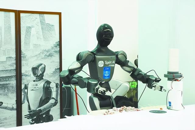 东说念主形机器东说念主现场串糖葫芦。马 俊摄